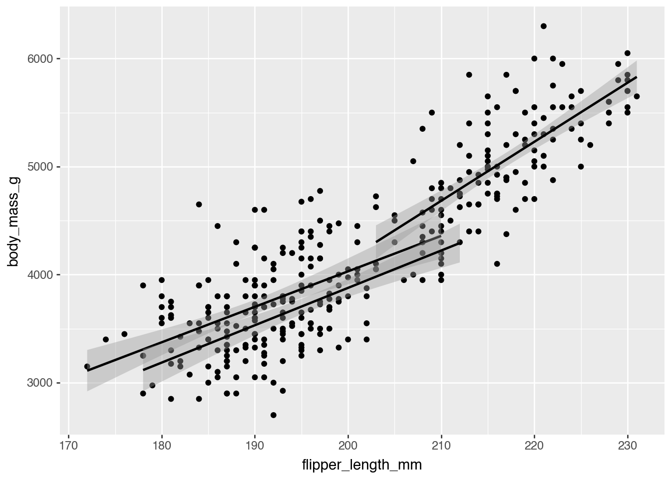 .aes(x="flipper_length_mm", y="body_mass_g", group="species")