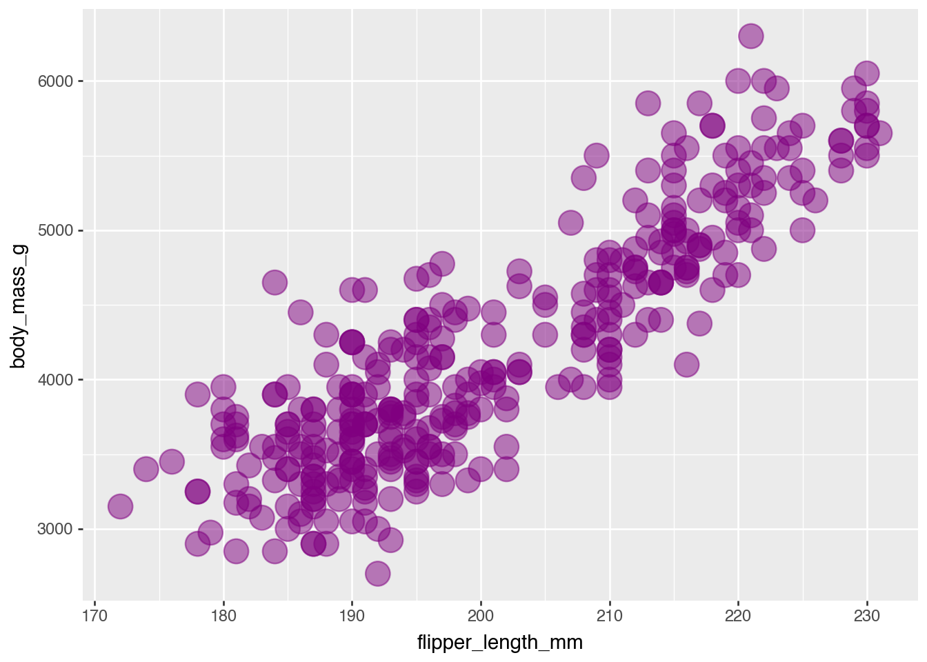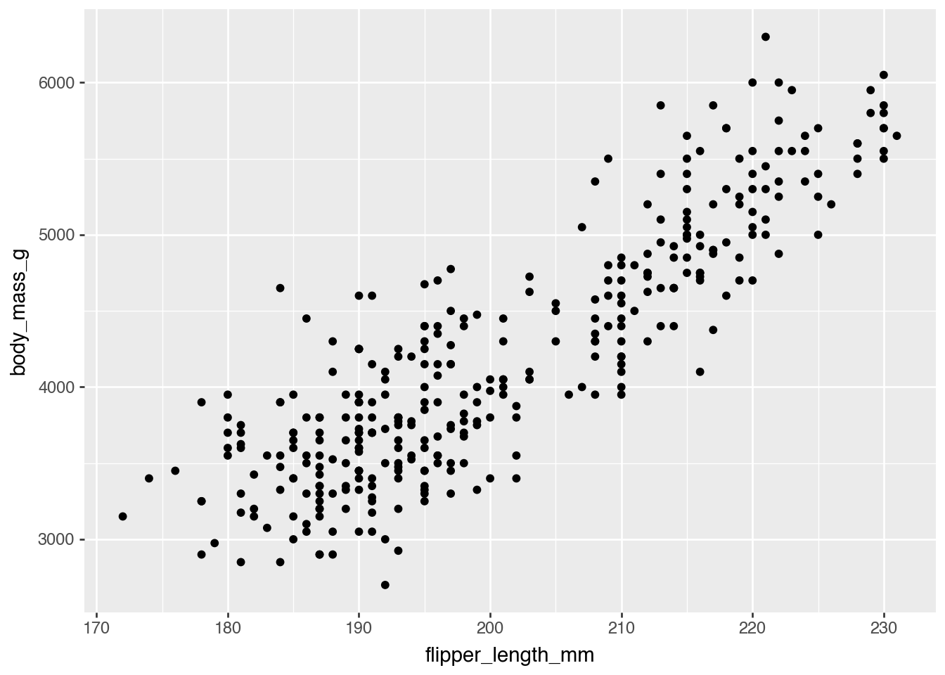 .aes(x="flipper_length_mm", y="body_mass_g")