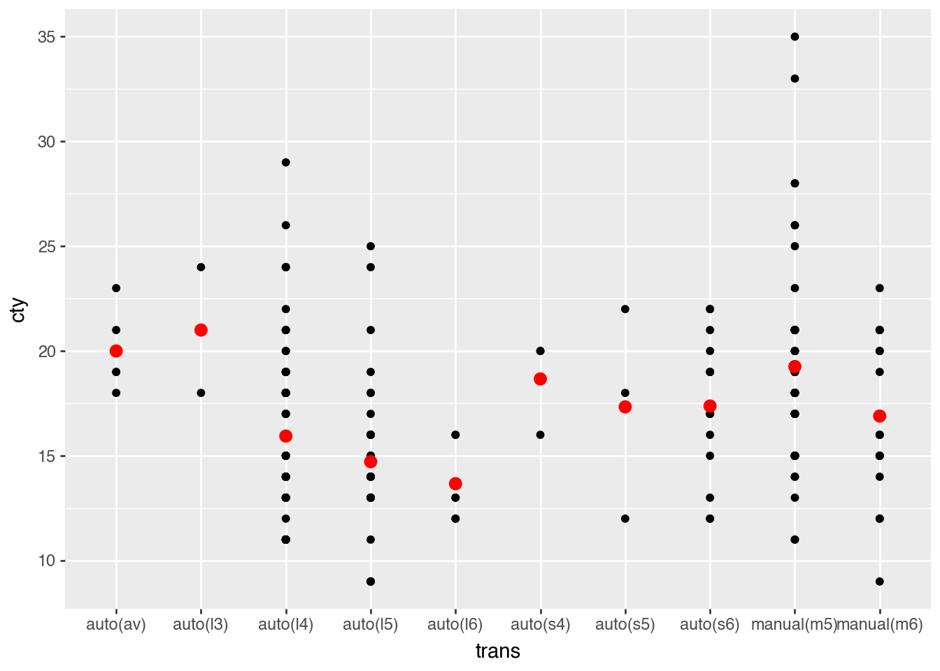 .geom_point(data=mean_mpg, color="red", size=3)